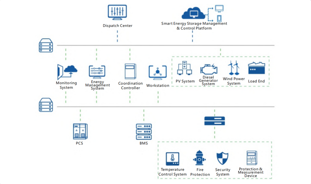 ENERGY HURRICANE Smart Energy Storage Management & Control Platform adopts an lot architecture and realizes collaboration between cloud and edge products. The on – site edge products integrate subsystems such as batteries, BMS (Battery Management System), PCS (Power Conversion System), thermal management, fire protection, and security. Based on different application scenarios of the power generation side, grid side, user side, and mobile side, the cloud products utilize various digital information technologies including big data, cloud computing, and artificial intelligence. They provide multiple interaction methods for participants such as owners , general contractors , integrators , operation and maintenance companies,power grid companies, and electricity sales companies,delivering targeted system solutions to customers